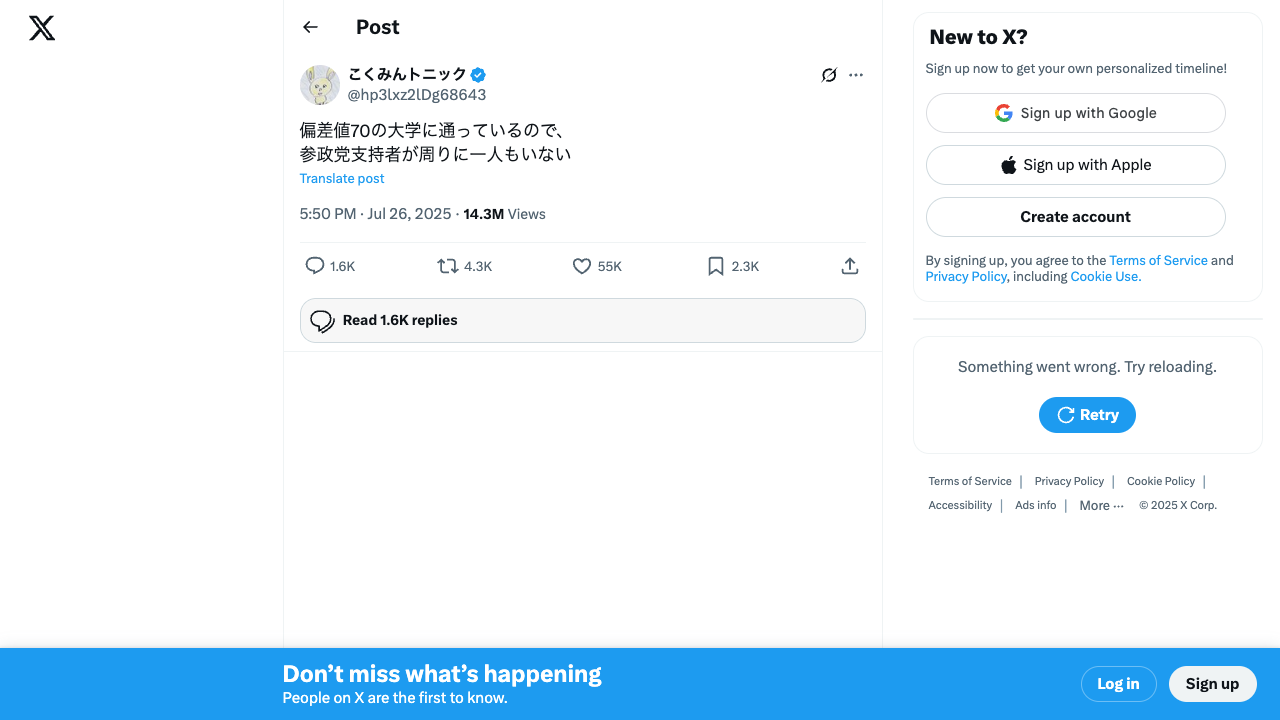 偏差値70の大学に通っているので、 参政党支持者が周りに一人もいない